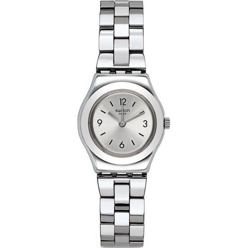 Marca: Swatch; Línea: Irony; Colección: Lady; Modelo: Gradino; Código del Artículo: YSS300G; Tipo de producto: Reloj de pulsera; Género: Mujer; Funciones: Solo Tiempo; Tipo de Movimiento / Mecanismo: Cuarzo / Bateria; Forma de la Caja: Redonda; Material de la Caja: Acero Inoxidable; Color de la Caja: Acero; Diámetro de la Caja Ø: 25 mm; Tipo de Esfera: Analógica; Color de la Esfera: Plata; Material de la Correa: Acero Inoxidable; Color de la Correa: Acero; Resistencia al agua: 30 metros / 3 bares.