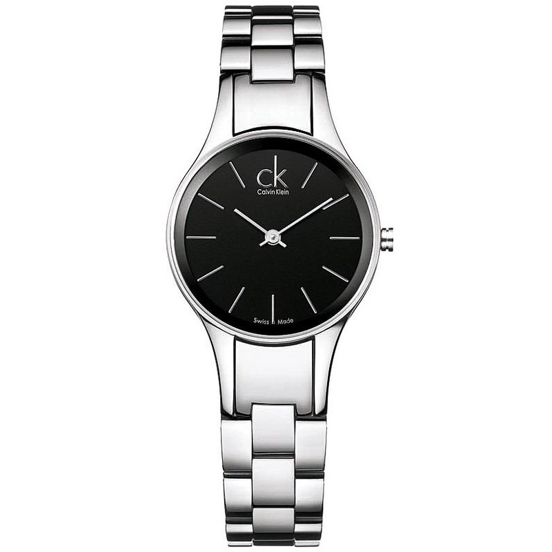 Marque: Calvin Klein; Collection: Semplicity; Code de l'Article: K4323130; Type de produit: Montre; Genre: Femme; Fonctions: Seul le Temps; Type de Mouvement: Quartz / Batterie; Matériau du Boîtier: Acier Inoxydable; Couleur du Boîtier: Acier; Diamètre du Boîtier Ø: 28 mm; Type de Cadran: Analogique; Couleur du Cadran: Noir; Matériau de la Sangle: Acier Inoxydable; Couleur de la Sangle: Acier; Résistance à l'eau: 30 mètres / 3 bar.