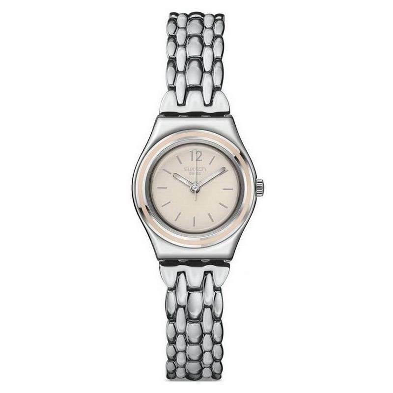 Marque: Swatch; Ligne: Irony; Collection: Lady; Modèle: Discretly; Code de l'Article: YSS285G; Type de produit: Montre; Genre: Femme; Fonctions: Seul le Temps; Type de Mouvement: Quartz / Batterie; Matériau du Boîtier: Acier Inoxydable; Couleur du Boîtier: Acier; Diamètre du Boîtier Ø: 25 mm; Type de Cadran: Analogique; Couleur du Cadran: Beige; Matériau de la Sangle: Acier Inoxydable; Couleur de la Sangle: Acier; Résistance à l'eau: 30 mètres / 3 bar.
