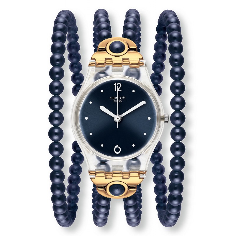 Brand: Swatch; Line: Originals; Collection: Lady; Model: Night Prohibition; Article Code: LK352; Type of product: Watch; Gender: Woman; Functions: Just Time; Type of Movement: Quartz / Battery; Case Material: Plastic / Resin; Case Color: Transparent; Case Diameter Ø: 25 mm; Type of Dial: Analog; Color of the Dial: Blue; Strap Material: Plastic / Resin; Strap Color: Blue; Water Resistance: 30 meters / 3 bar.